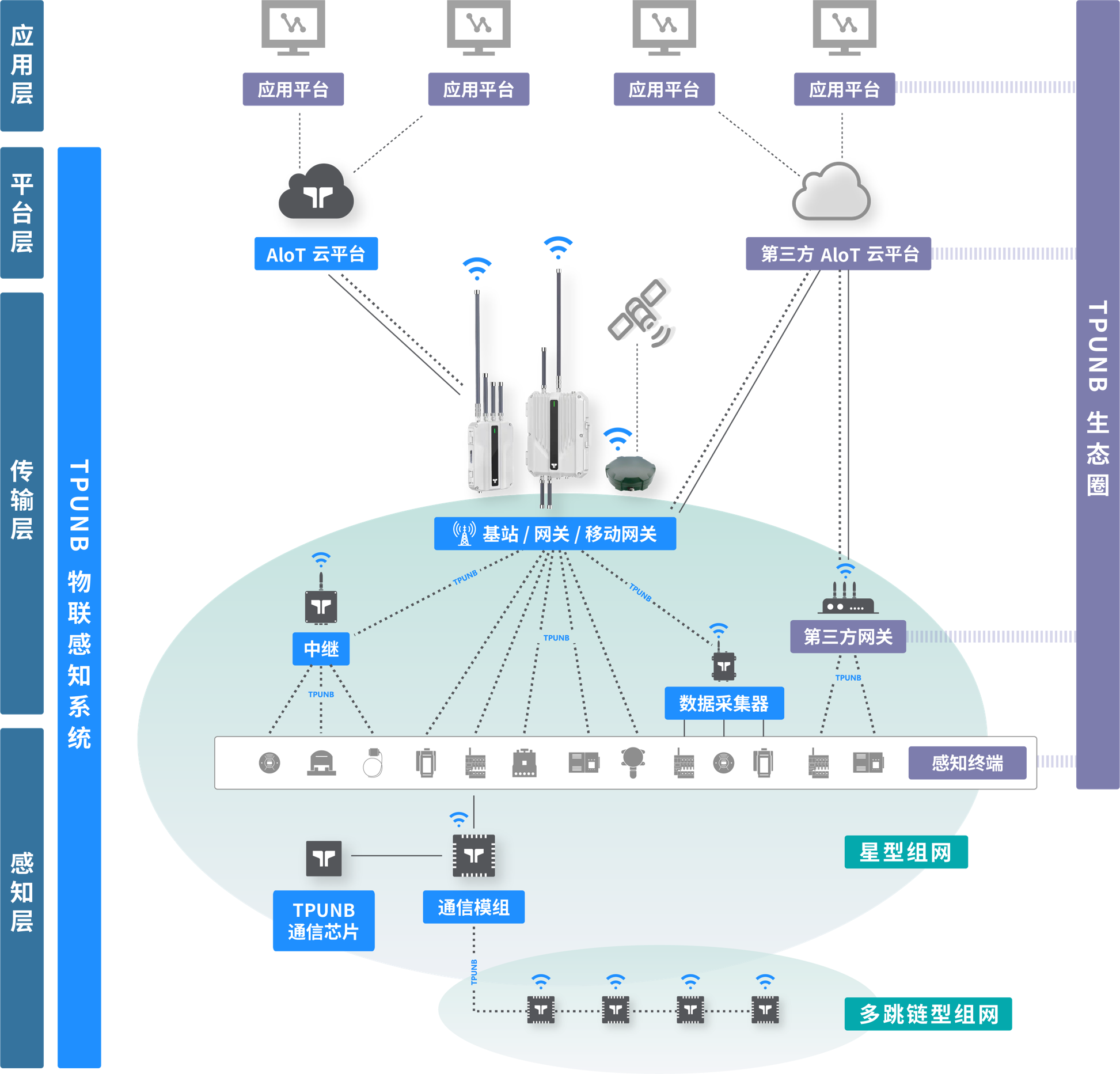 TPUNB窄带物联网通信系统面向海量泛在的物联网应用场景,具备自主知识产权、低功耗、多并发、广覆盖、可定制、安全可靠 6大技术优势,可与4G/5G、北斗系统融合,形成区域、城域乃至省域低功耗物联网络。