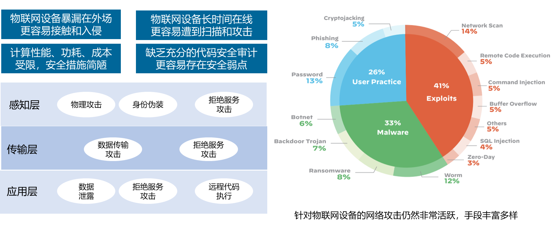 万物互联,物联网设备海量增长,物理世界与数字世界加快融合,也放大物联网安全问题。物联网终端因其计算资源小、低成本、低功耗等限制,不能简单的将传统互联网安全技术移植到物联网终端,国外做法是PUF结合轻量级加密算法,形成轻量化安全加固。